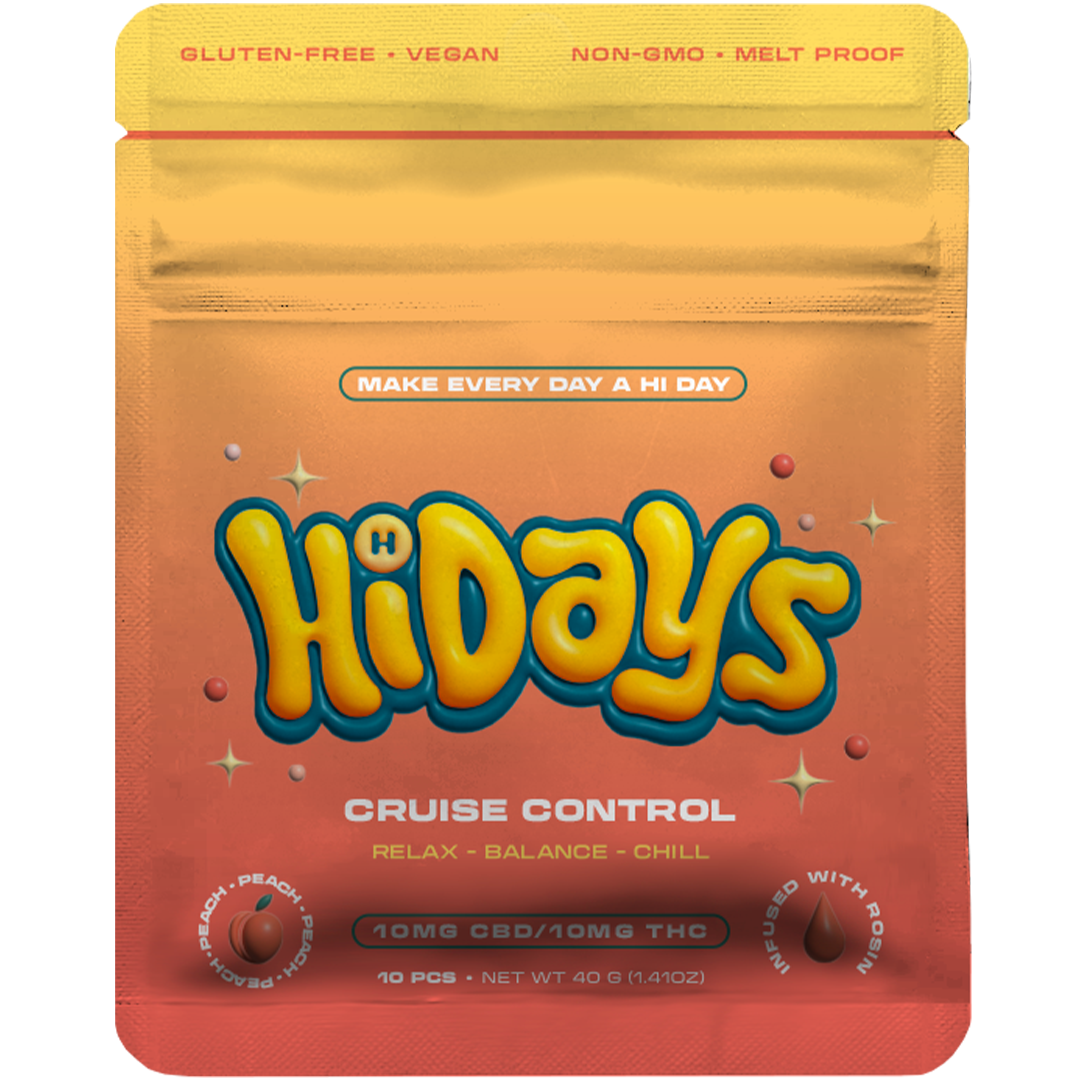 Need to slow things down? Cruise Control is your all-day autopilot — a balanced blend of 10mg CBD and 10mg THC to keep your body at ease and your mind clear. Smooth, steady, and bursting with ripe peach flavor, it’s like slipping into your own personal paradise.